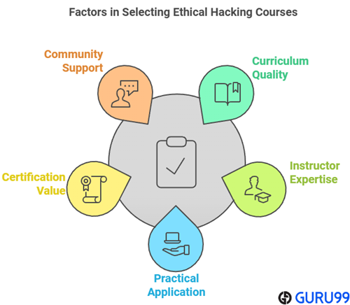 在 Guru99,我们致力于通过严格的内容创建和审查流程提供准确、相关和客观的信息。请查看以下重要因素。在对 40 多门道德黑客课程进行 100 多个小时的研究后,我们提供了一份专业的、无偏见的指南,详细介绍了免费和付费选项。这些选项包括满足行业标准的特性、定价和经过验证的认证。道德黑客课程旨在为学习者提供识别和有效应对安全威胁的基本技能。选择正确的课程需要仔细评估以确保质量和相关性,帮助您做出明智的决定并提升您的职业发展。