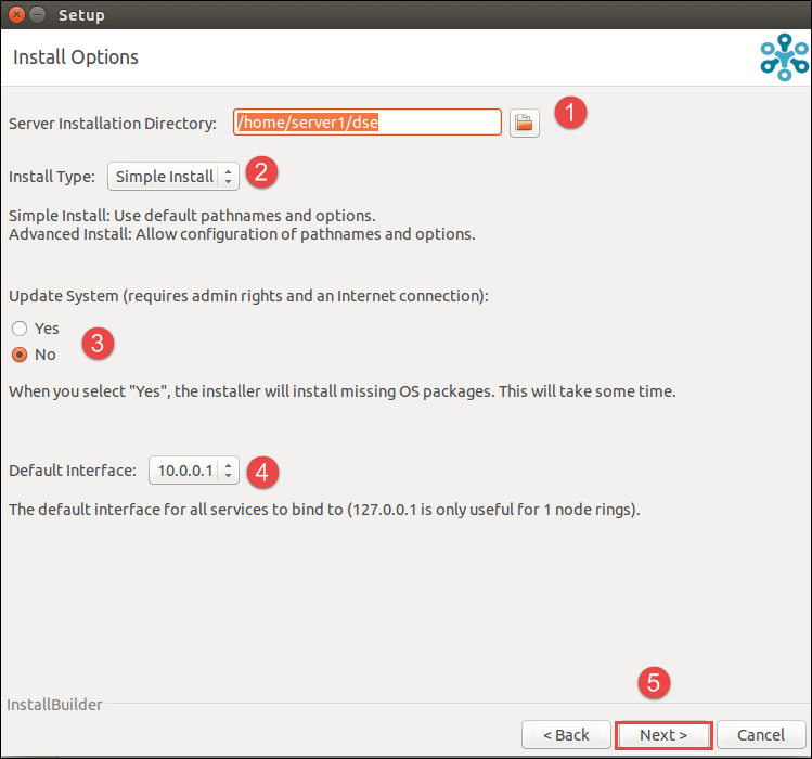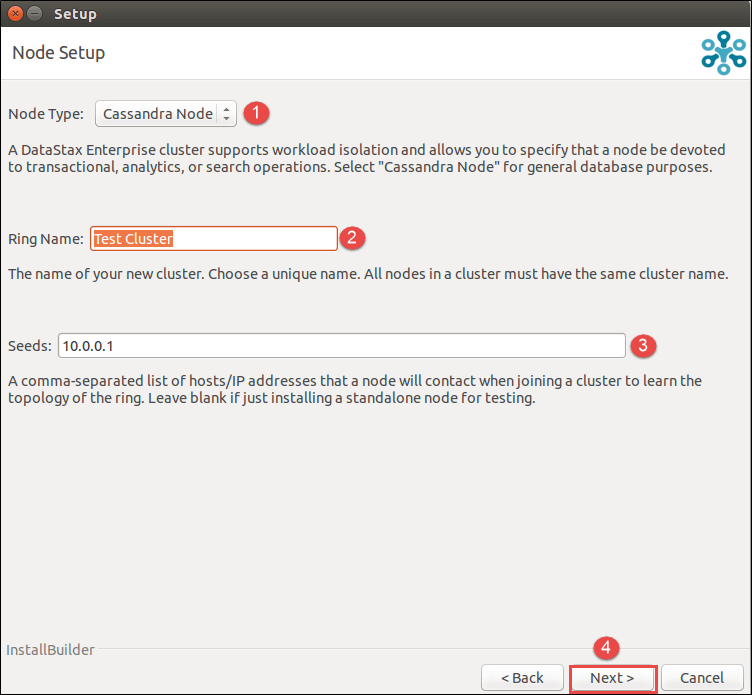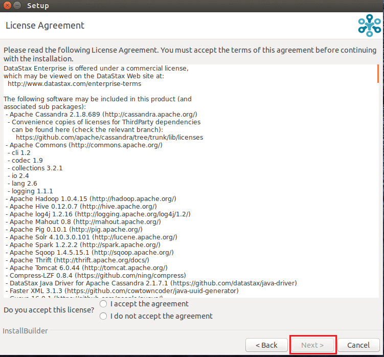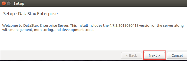 在Linux终端中,运行Cassandra企业版安装程序。将显示以下页面。