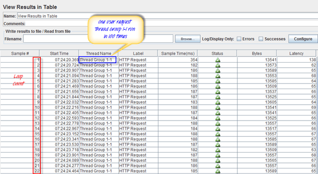 如下图所示,JMeter 模拟了向 Web 服务器 http://www.google.com/ 发送的一个用户请求,共 100 次。在用户请求发送 100 次后,测试停止。