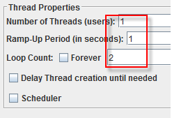 在循环计数字段中添加值 50,如下图所示。除了您为上述线程组指定的循环值 = 2 之外,它将使向 Web 服务器 google.com 发送的一个用户请求运行50次。因此,JMeter 将总共发送 2 * 50 = 100 个 HTTP 请求。