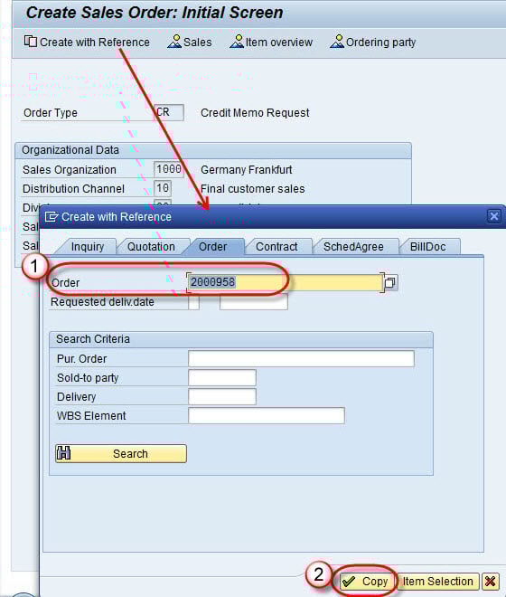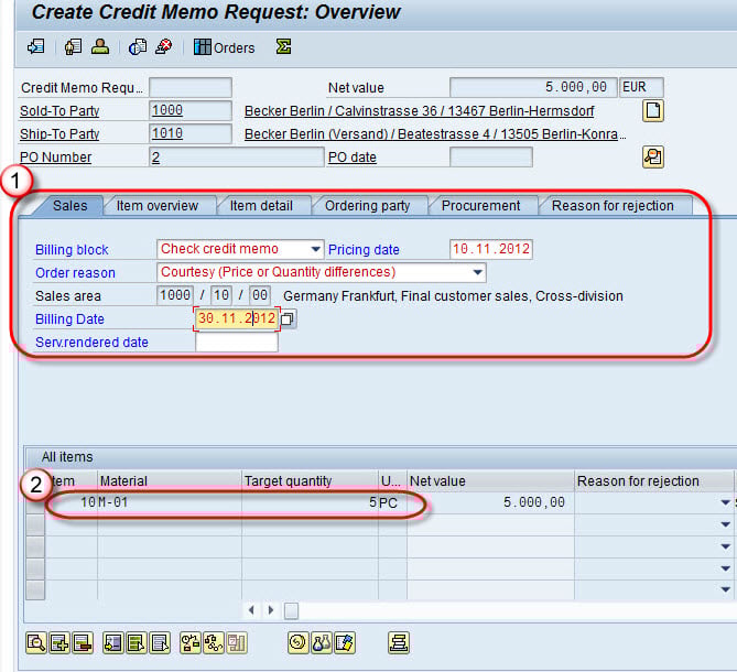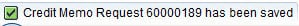 将显示消息“贷项通知单请求 60000189 已保存”。