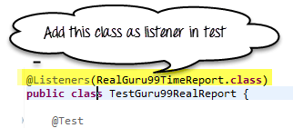 - 创建测试方法,并将 RealGuru99Report 类作为监听器添加到测试方法类中。