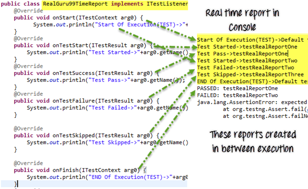 - 如果我们需要在执行期间获取报告,则需要 ITestListener。